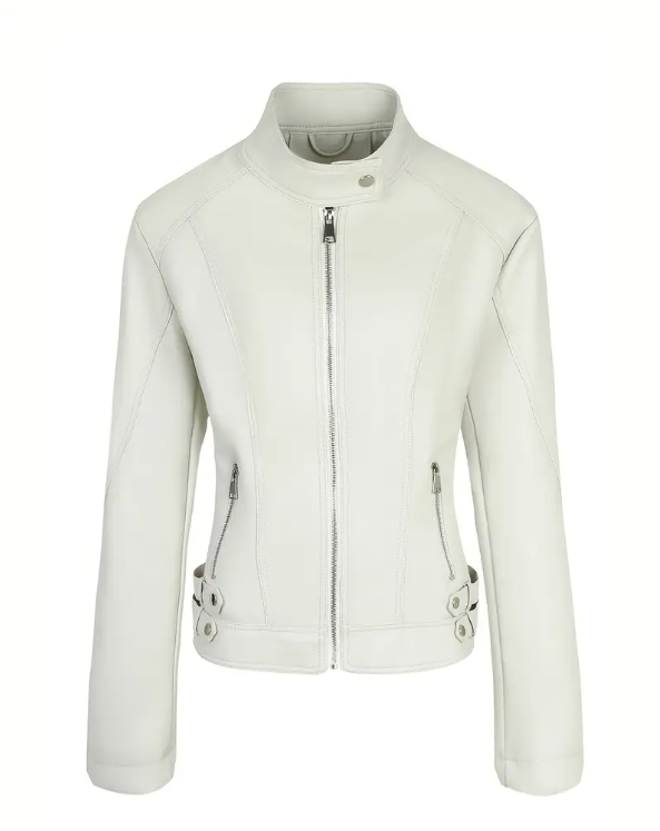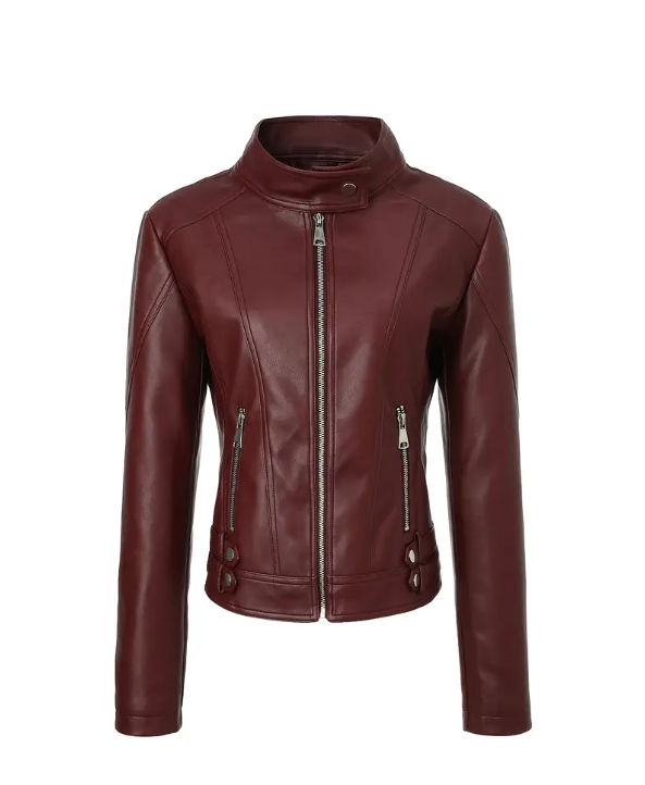 Step into sleek sophistication with the Brenda Leather Jacket – the perfect balance of modern style and everyday versatility. The slim-fit cut flatters your shape, while the stand collar and zipper front add a polished, contemporary edge. Lightweight yet durable, it’s easy to layer over anything from casual tees to evening dresses.