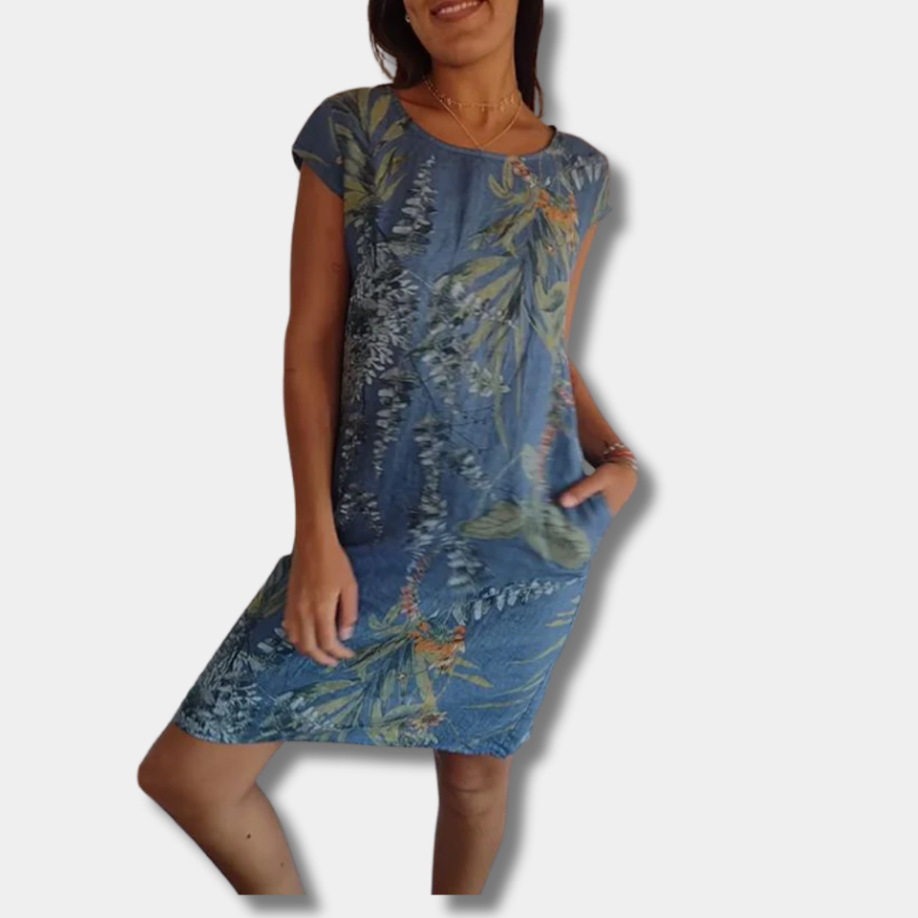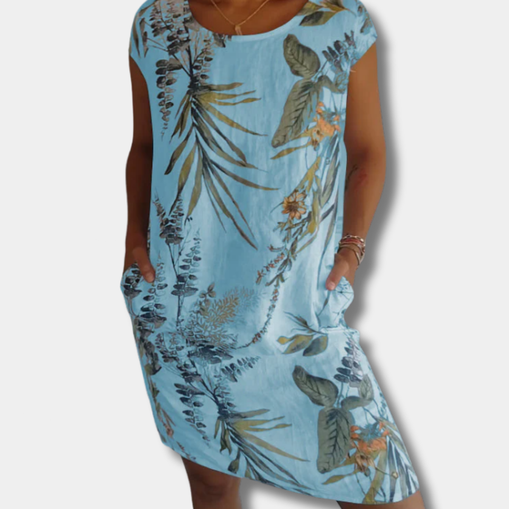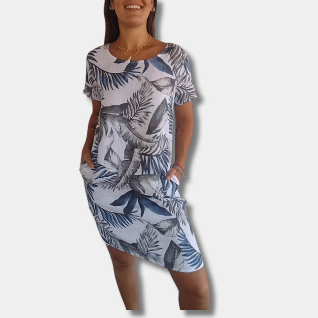 Step into everyday ease with the Lyssa dress—your go-to piece for warm weather, errands, and slow mornings alike. Made with breathable fabric and a relaxed silhouette, this printed dress keeps you feeling fresh and looking polished. The round neckline, soft drape, and gentle shape offer light tummy coverage while letting you move freely and comfortably all day.