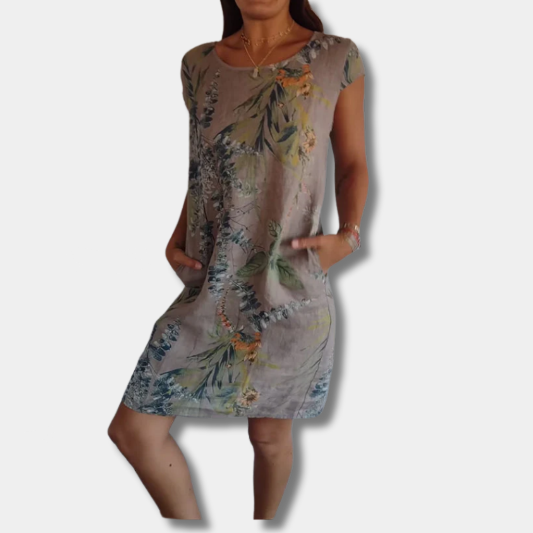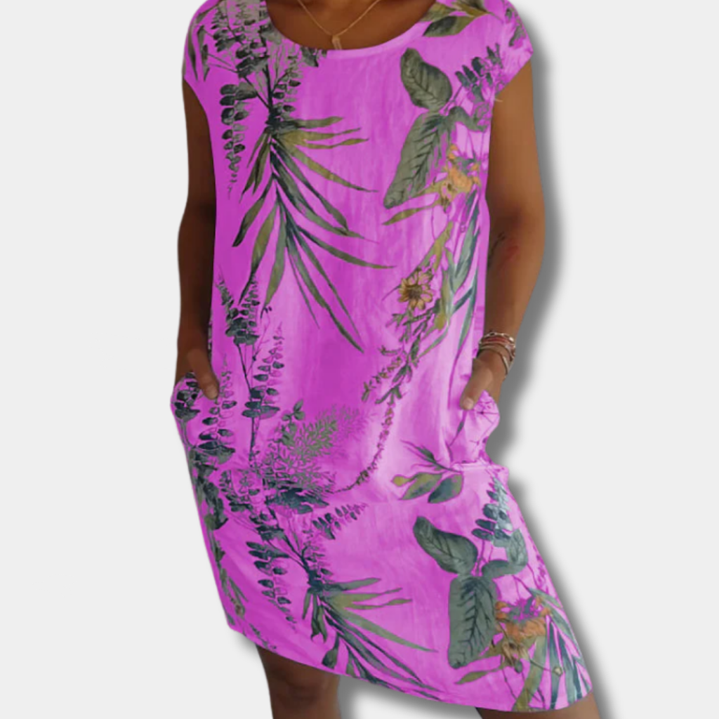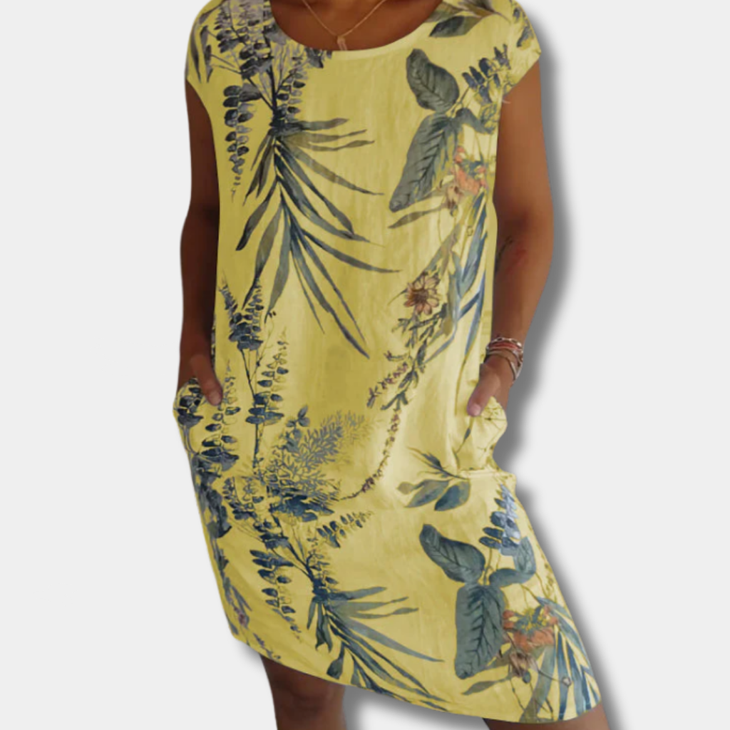 Step into everyday ease with the Lyssa dress—your go-to piece for warm weather, errands, and slow mornings alike. Made with breathable fabric and a relaxed silhouette, this printed dress keeps you feeling fresh and looking polished. The round neckline, soft drape, and gentle shape offer light tummy coverage while letting you move freely and comfortably all day.