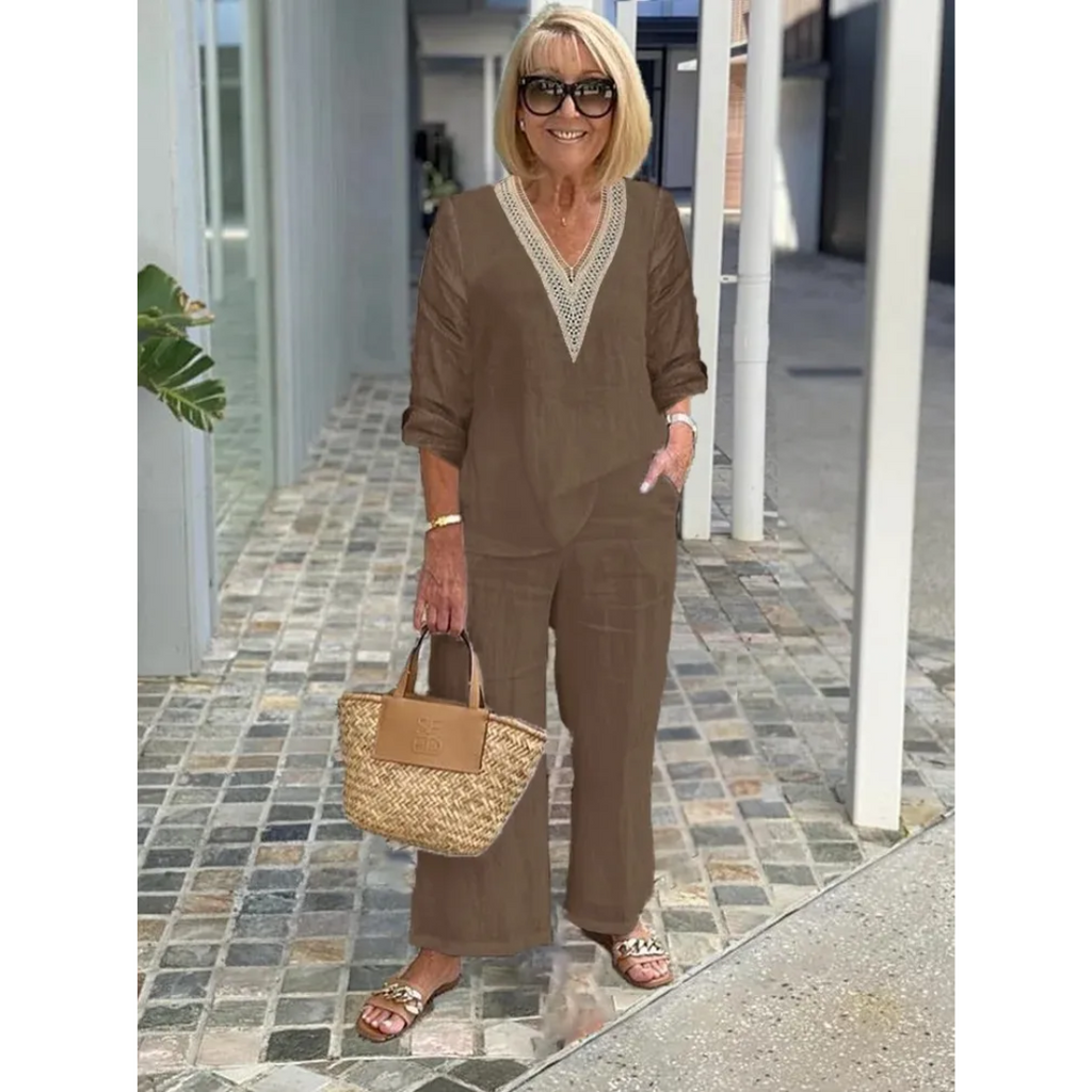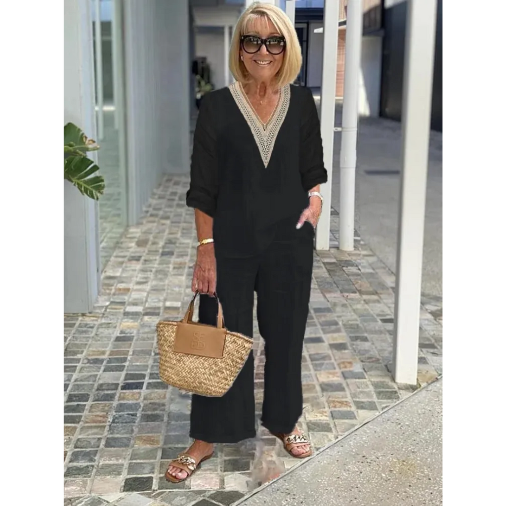 Step into laid-back elegance with this lounge set, crafted to move with you while providing gentle tummy coverage and timeless style. With refined stitchwork, soft long sleeves, and a flattering, confidence-boosting fit, Maribel blends cozy comfort with effortless polish - perfect for morning errands, afternoon coffee, or evenings at home. No cling, no fuss - just easy confidence you’ll love to live in.