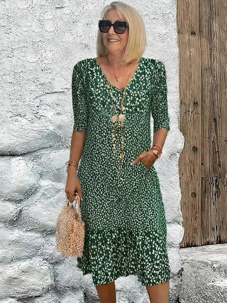 Step into light, flattering ease with the Nora dress, your go-to for sunny days and everyday moments. With its soft V-neck, relaxed sleeves, and flowy mid-waist silhouette, it gently skims your shape without clinging. Breathable and easy to wear, it offers gentle tummy coverage and all-day comfort—perfect for errands, coffee dates, or weekend strolls.