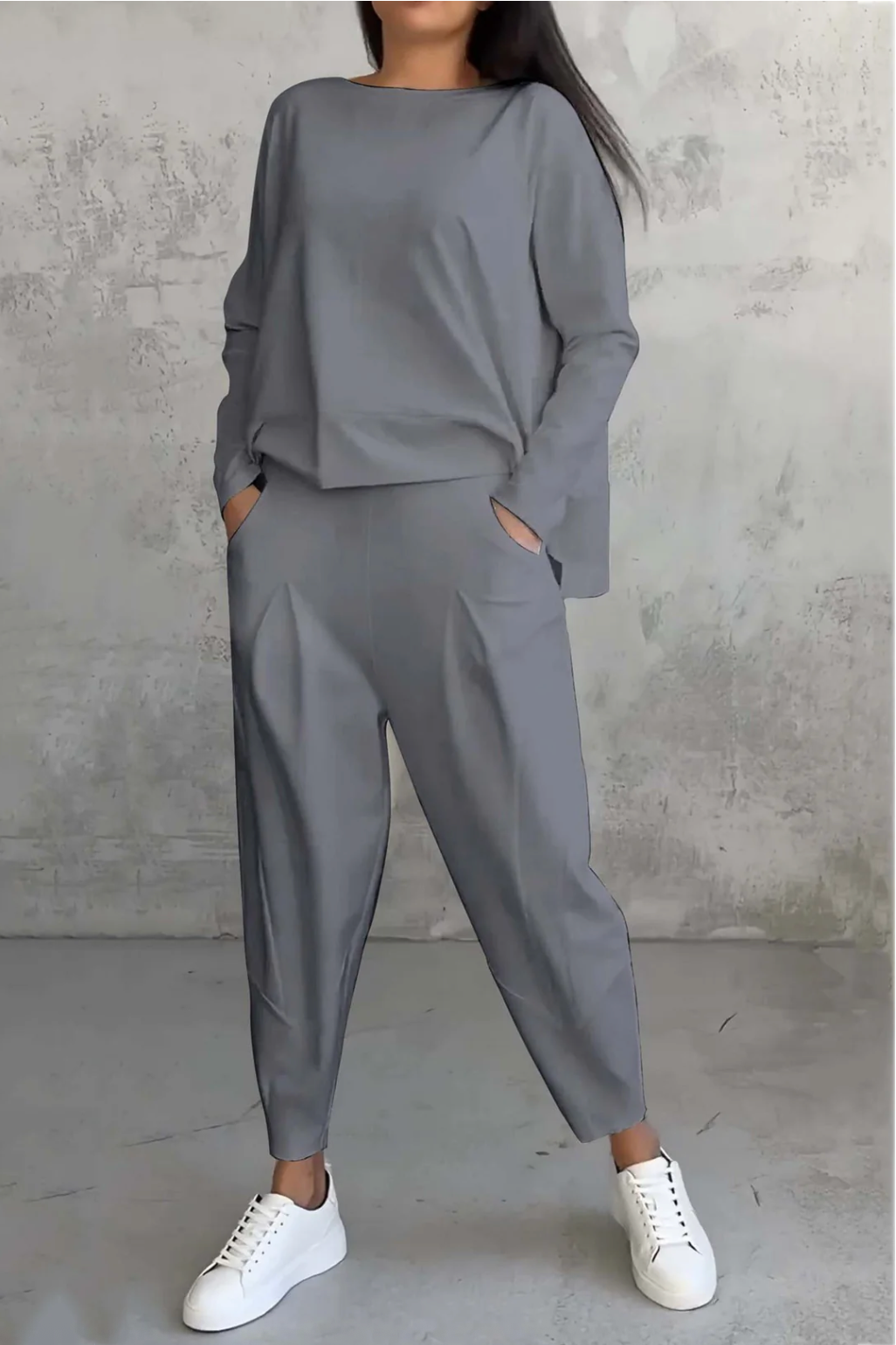 Step into calm, clean style with the Pia Set, your go-to look for casual days that call for easy polish. This two-piece set is designed for real women who want comfort without compromise, lightweight, ultra-soft fabric that moves with you and covers you - without clinging or revealing. The relaxed fit and draped silhouette offer flattering ease that works for everything, coffee runs, quick errands, or lounging in style.